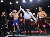 Вечер профессионального бокса, организованный промоутерской компанией Dynamo boxing promotion, в УСК "Крылья Советов". Российский боксер Муслим Гаджимагомедов (слева) и колумбийский боксер Дейбис Беррокаль (справа) после поединка.