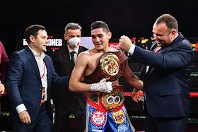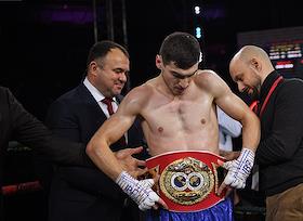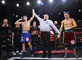 Вечер профессионального бокса, организованный промоутерской компанией Dynamo boxing promotion, в УСК "Крылья Советов". Российский боксер Альберт Батыргазиев (в центре) после поединка с венесуэльским боксером Франклином Мансанилья.