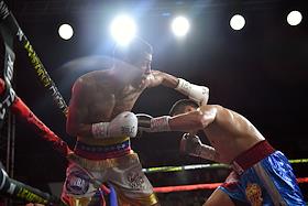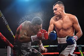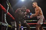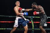 Вечер профессионального бокса, организованный промоутерской компанией Dynamo boxing promotion, в УСК "Крылья Советов". Доминиканский боксер Феликс Валера (слева) во время поединка.