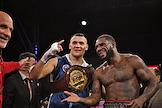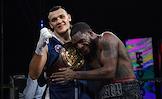 Вечер профессионального бокса, организованный промоутерской компанией Dynamo boxing promotion, в УСК "Крылья Советов". Российский боксер Максим Власов (слева) и доминиканский боксер Феликс Валера (справа) после поединка.