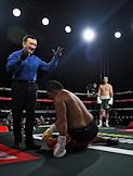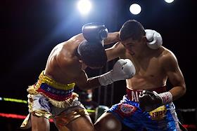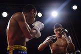 Вечер профессионального бокса, организованный промоутерской компанией Dynamo boxing promotion, в УСК "Крылья Советов". Венесуэльский боксер Франклин Мансанилья (слева) во время поединка.