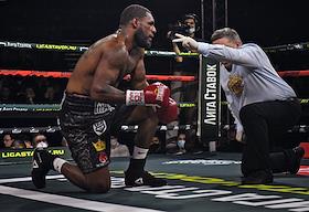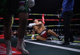 Вечер профессионального бокса, организованный промоутерской компанией Dynamo boxing promotion, в УСК "Крылья Советов". Доминиканский боксер Феликс Валера после поединка с российским боксером Максимом Власовым.