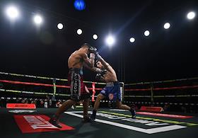 Вечер профессионального бокса, организованный промоутерской компанией Dynamo boxing promotion, в УСК "Крылья Советов". Российский боксер Максим Власов (справа) и доминиканский боксер Феликс Валера (слева) во время поединка.