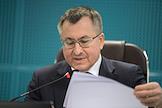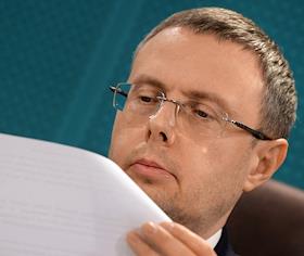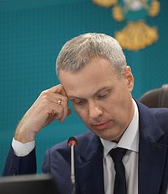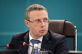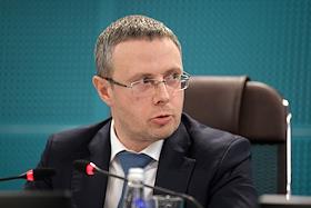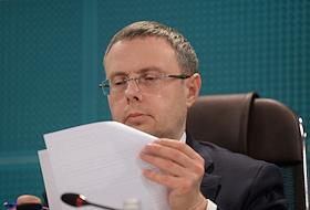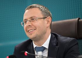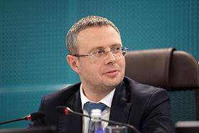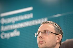 Press conference of the Federal Antimonopoly Service of Russia (FAS), JSC "SPIMEX" and JSC "Russian Railways", dedicated to the discussion of the formation of an exchange infrastructure for the sale of petroleum products with transportation by rail, in a hybrid format, in the FAS Russia. Head of the FAS Russia Maxim Shaskolsky during a press conference.