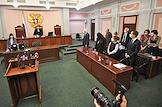 Заседание по делу о ликвидации историко-просветительского, благотворительного и правозащитного общества "Международный мемориал" (внесен Министерством юстиции России в реестр некоммерческих организаций, выполняющих функции иностранного агента) в Верховном суде России. Жанровая фотография. Рабочие места судей.