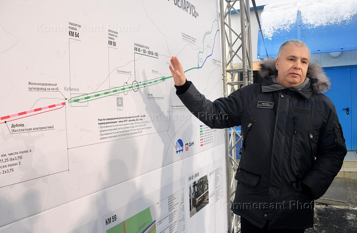Торжественная церемония открытия магистрали М-1 "Беларусь" после реконструкции. Директор Департамента обеспечения проектной деятельности ГК "Автодор" Вадим Ермилов во время церемонии.