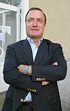 Главный тренер футбольной команды "Зенит" (Санкт-Петербург) Дик Адвокат сидит в автобусе своей команды перед началом матчем с командой "Динамо" (Москва) на стадионе имени Кирова.