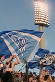 Болельщики футбольной команды "Зенит" (Санкт-Петербург) на трибуне во время игры своей команды в матче с командой "Динамо" (Москва) на стадионе имени Кирова.