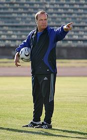 Главный тренер футбольной команды "Зенит" (Санкт-Петербург) Дик Адвокат во время тренировки своей команды перед матчем с командой "Динамо" (Москва) на стадионе имени Кирова.