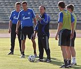Главный тренер футбольной команды "Зенит" (Санкт-Петербург) Дик Адвокат (в центре) во время тренировки своей команды перед матчем с командой "Динамо" (Москва) на стадионе имени Кирова.