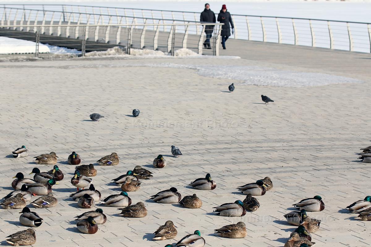 Виды Казани. Утки сидят на набережной озера Кабан.