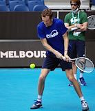 Теннисный турнир Australian Open-2022. Российский теннисист Андрей Рублев (справа) во время тренировки.
