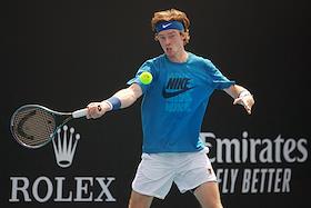 Теннисный турнир Australian Open-2022. Российский теннисист Андрей Рублев во время тренировки.