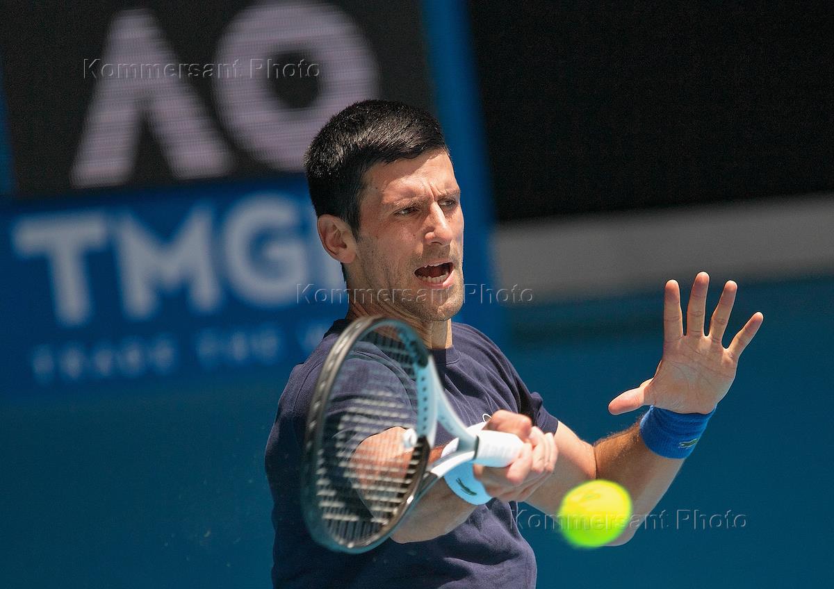Теннисный турнир Australian Open-2022. Сербский теннисист Новак Джокович во время тренировки.