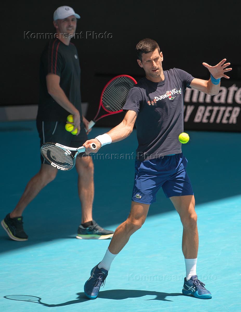 Теннисный турнир Australian Open-2022. Сербский теннисист Новак Джокович (справа) во время тренировки.
