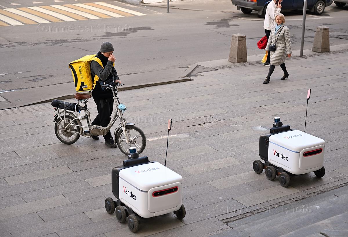 Жанровая фотография. Роботы-доставщики "Яндекс" на улице.