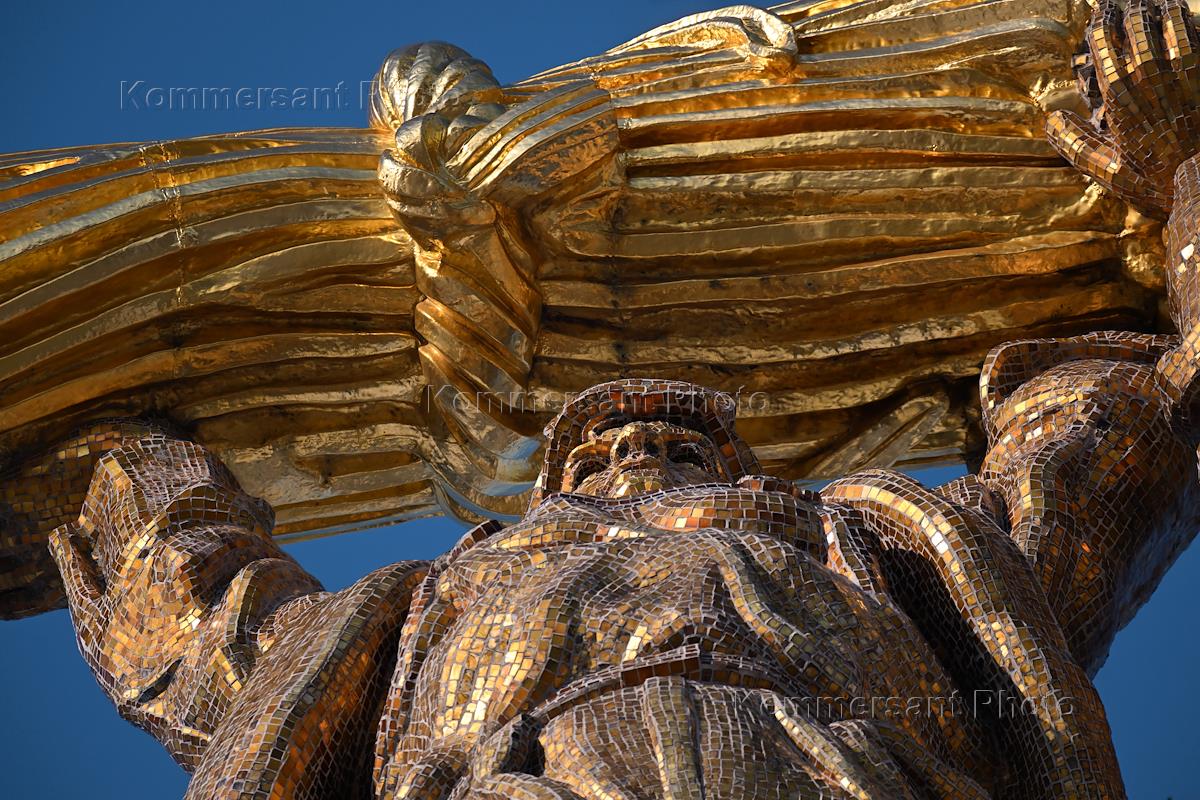 Виды Москвы. Жанровая фотография. Памятник "Тракторист и колхозница" на арке главного входа на ВДНХ.