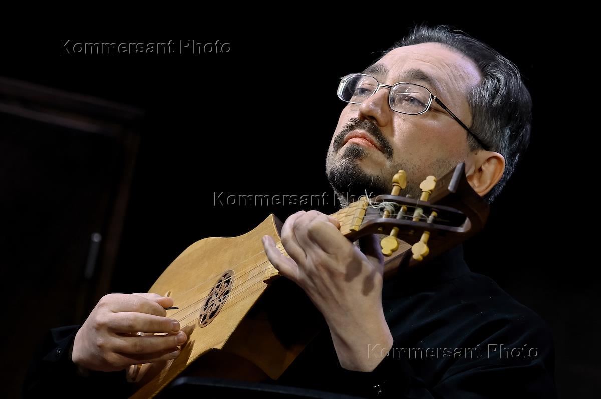 XXIV Chamber Music Festival "Return". Concert "Duma" in the Small Hall of the Moscow Conservatory. Head of the early music ensemble Labyrinthus Daniil Ryabchikov during a concert.