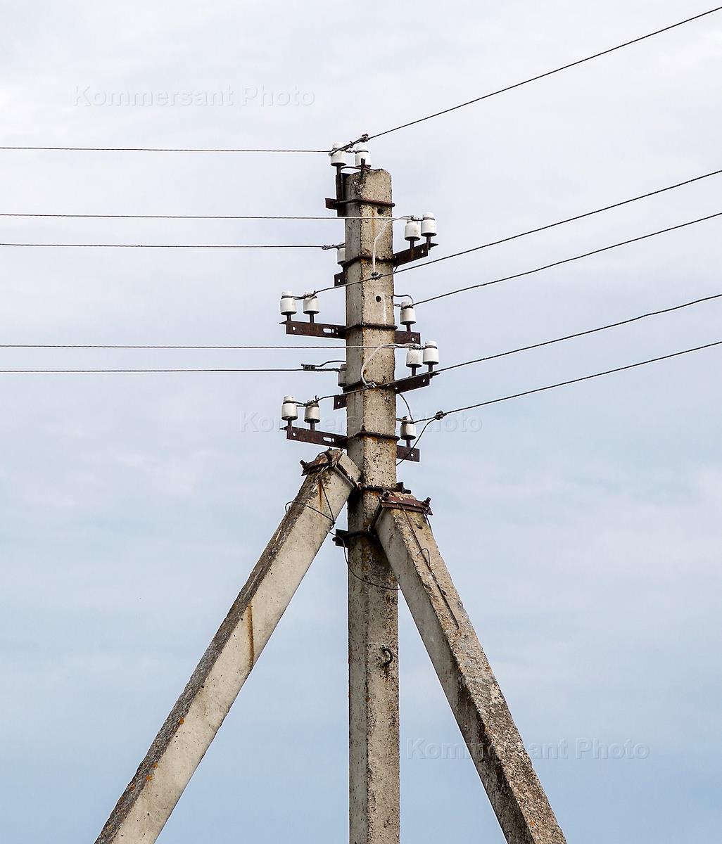 Genre photography. Electricity and lighting. Power line support in the countryside.