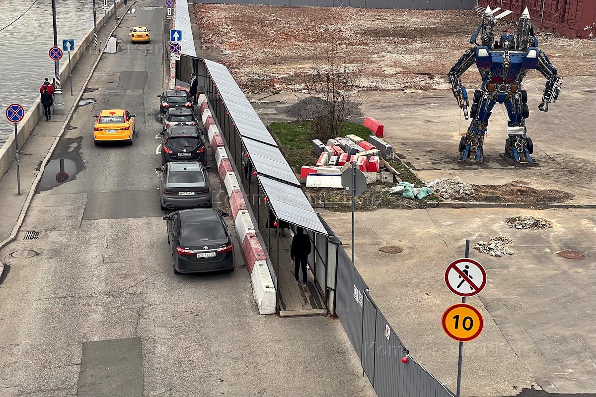 Views of Moscow. Genre photography. Metal structure in the form of a transformer at a construction site.