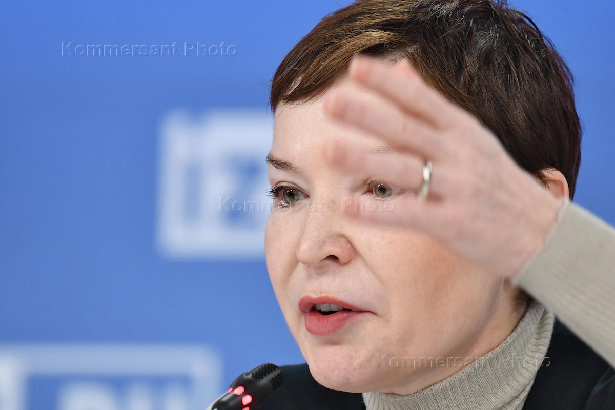 Пресс-конференция, посвященная годовщине со дня начала массовой вакцинации от коронавирусной инфекции COVID-19 в России в пресс-центре МИЦ "Известия". Руководитель Высшей школы организации и управления здравоохранением Гузель Улумбекова во время пресс-конференции.