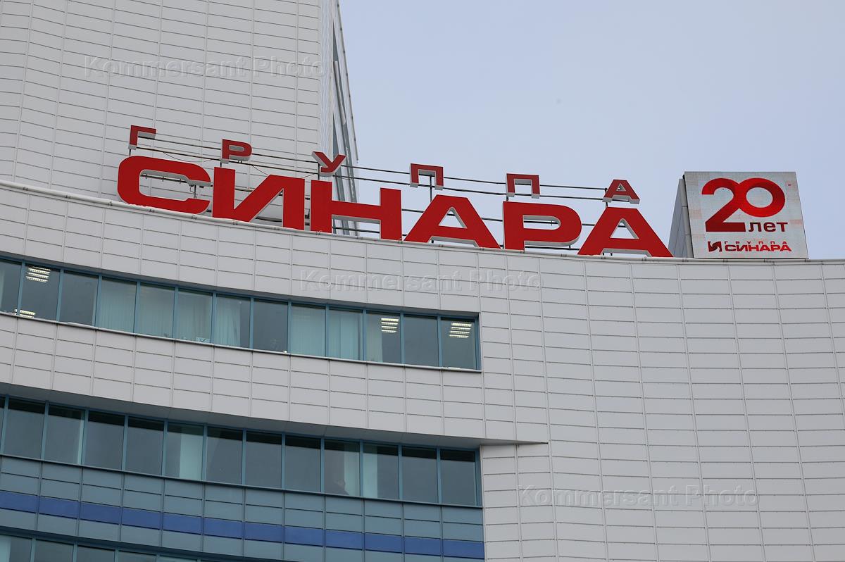 Виды Екатеринбурга. Жанровая фотография. Вывеска "Синара группы" на оконном стекле.