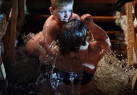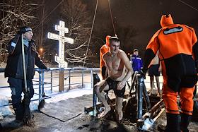 Праздник Крещения Господня. Крещенские купания в Нижнем Майском пруду (Олений пруд № 5) в парке "Сокольники".
