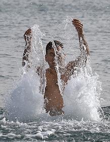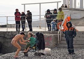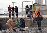 Праздник Крещения Господня. Крещенские купания в Черном море на пляже Алушты.