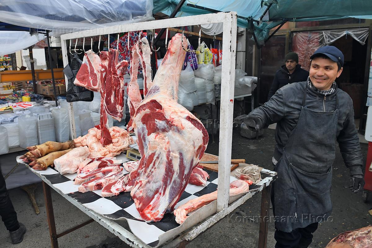 Виды Бухары. Жанровая фотография. Мясной прилавок на рынке.