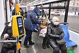 Проверка масочного режима на общественном транспорте. Сотрудники ГКУ "Организатор перевозок" во время проверки в трамвае №7.