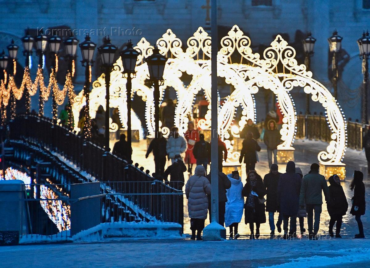 Виды Москвы. Жанровая фотография. Новогодняя иллюминация на Патриаршем мосту.