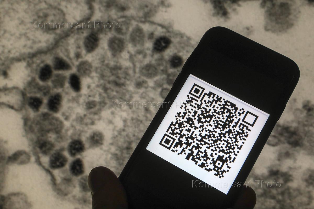 Genre photography. QR code for coronavirus infection COVID-19.
