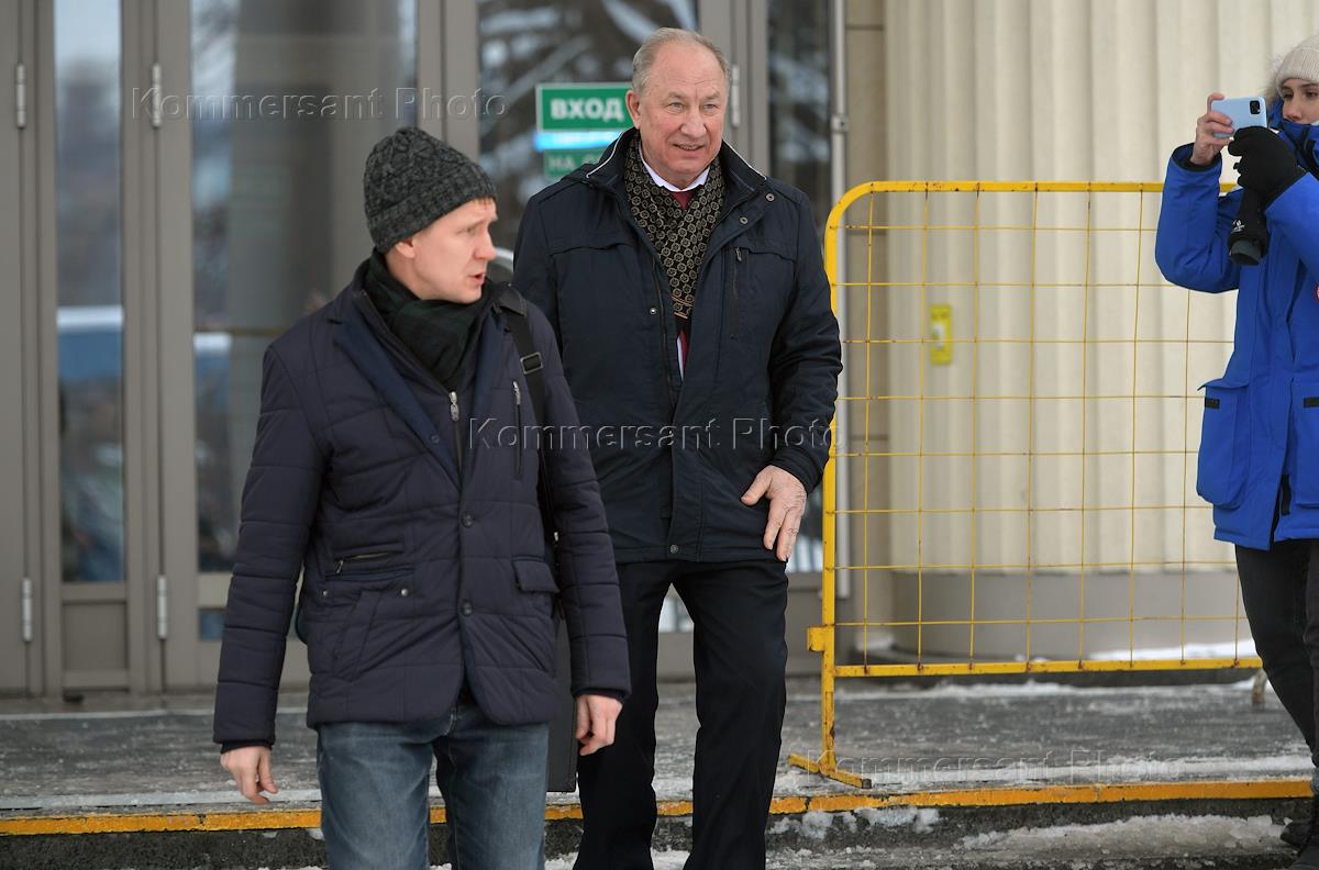 Заседание по делу первого заместителя председателя комитета Государственной думы (ГД) России по делам национальностей Валерия Рашкина, обвиняемого в незаконной охоте, в Московском городском суде. Первый заместитель председателя комитета ГД России по делам национальностей Валерий Рашкин (слева) у здания суда.