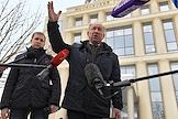 Заседание по делу первого заместителя председателя комитета Государственной думы (ГД) России по делам национальностей Валерия Рашкина, обвиняемого в незаконной охоте, в Московском городском суде. Первый заместитель председателя комитета ГД России по делам национальностей Валерий Рашкин (справа) у здания суда.