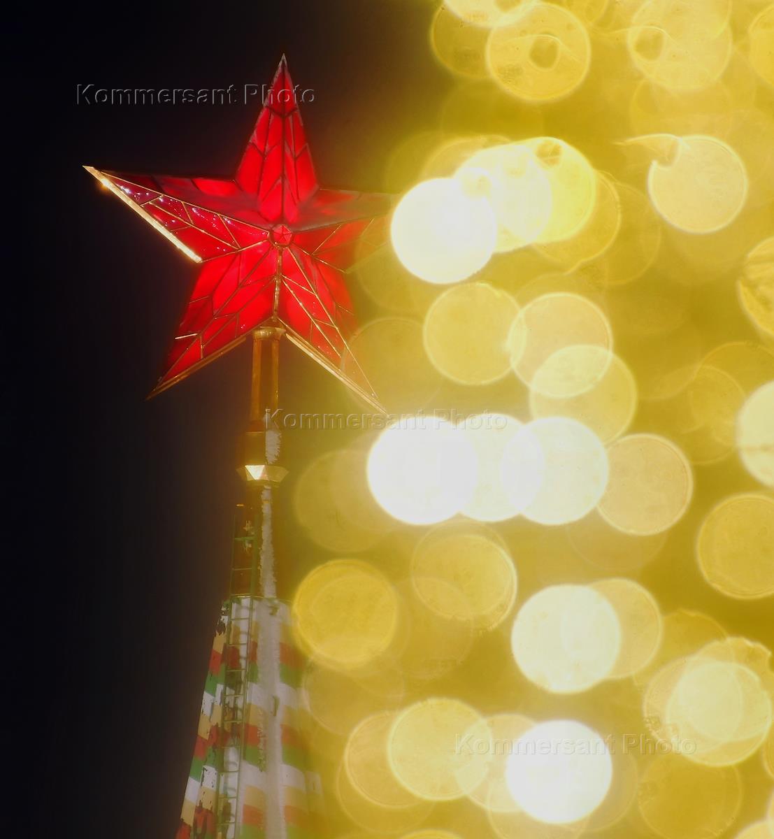 Genre photography. Views of Moscow. Ruby star on the Kremlin tower. Christmas illumination.