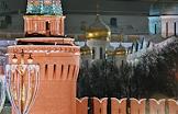 Виды Москвы. Жанровая фотография. Колокольня Ивана Великого и купола Успенского собора на территории Кремля.