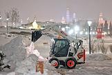 Виды Москвы. Жанровая фотография. Снегоуборочная техника во время уборки снега в ландшафтном парке "Зарядье".