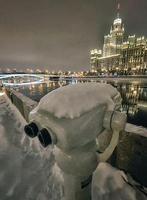 Виды Москвы. Жанровая фотография. Смотровой бинокль в снегу на Космодамианской набережной.