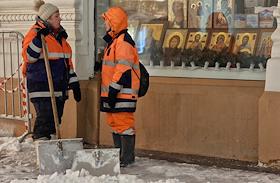 Виды Москвы. Жанровая фотография. Сотрудники коммунальной службы во время уборки снега.
