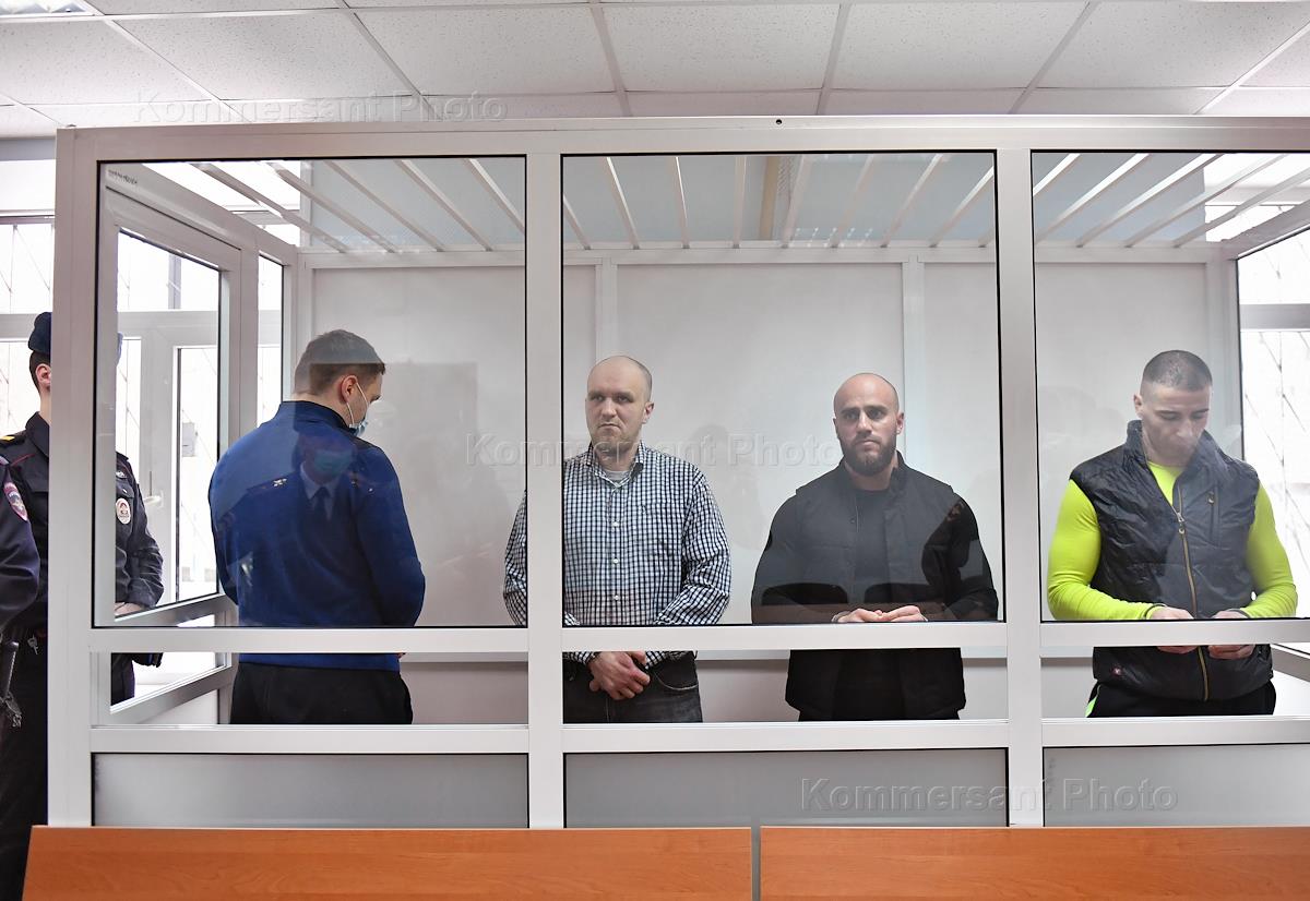 Заседание по делу о разбое с участием бывших сотрудников спецподразделений "Альфа" и "Вымпел" ФСБ России: Артура Власова, Дмитрия Казанцева, Дмитрия Капышкина, Александра Карелина, Хетага Маргиева, обвиняемые по делу разбой, совершенный организованной группой с хищением средств в особо крупном размере, в Московском гарнизонном военном суде.