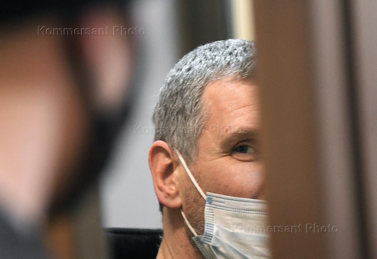 Hearing on the case of Andrei Molokoedov, leader of the United People's Communal Partnerships (E.N.O.T.) patriotic organization, accused of creating a criminal community, extortion and threatening to kill, in the Kuntsevsky District Court. Andrei Molokoedov (right) during a court session.