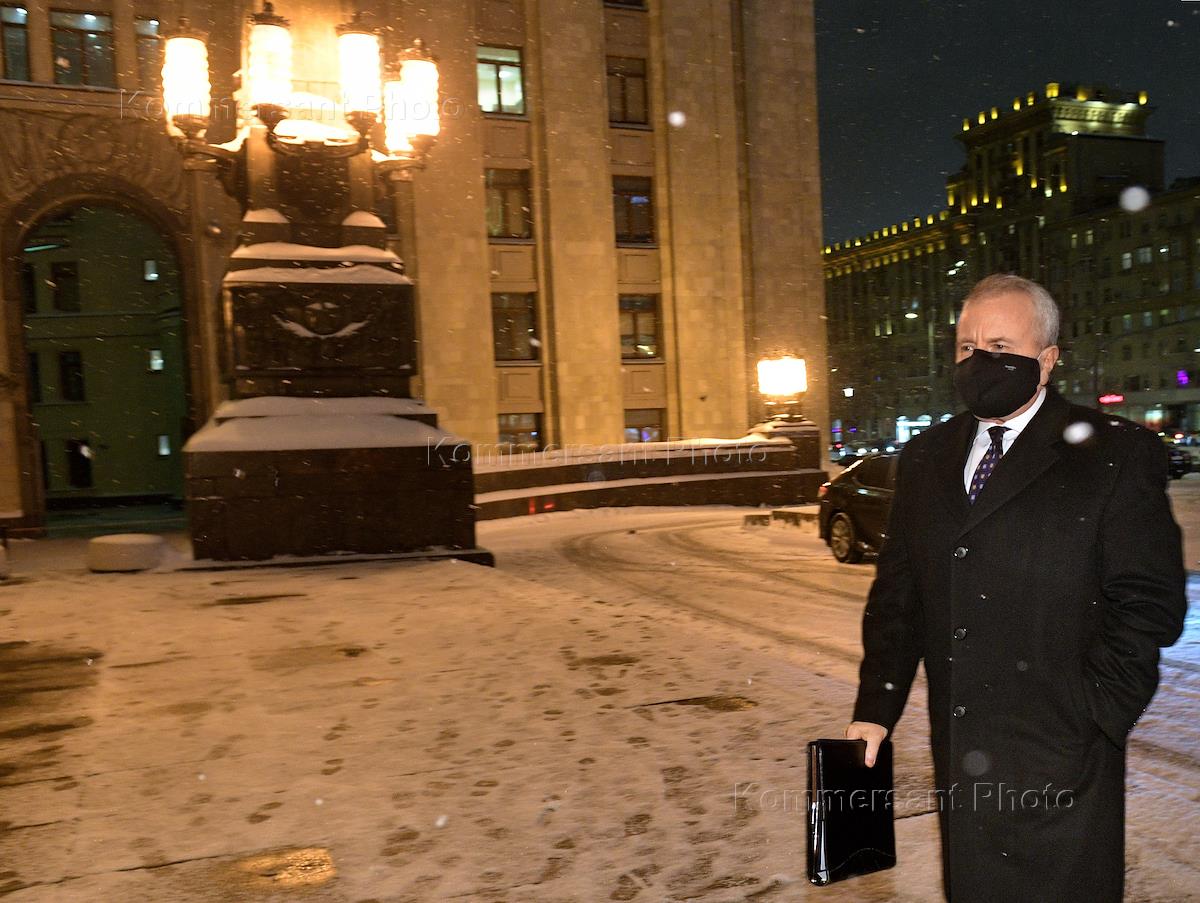 Посол США в России Джон Салливан покидает здание МИД России. Посол США привез в МИД России ответ на российские требования о гарантиях безопасности.