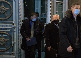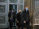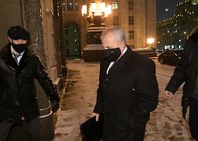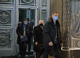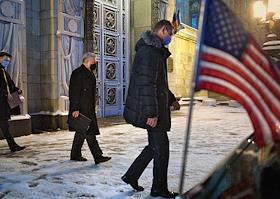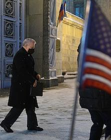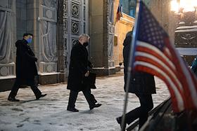 Посол США в России Джон Салливан (в центре) прибыл в МИД России. Посол США привез в МИД России ответ на российские требования о гарантиях безопасности.