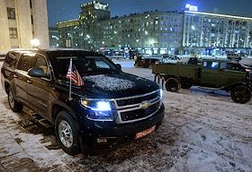 Посол США в России Джон Салливан прибыл в МИД России. Автомобиль посла США у здания МИД России на Смоленской площади. Посол США привез в МИД России ответ на российские требования о гарантиях безопасности.
