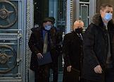 Посол США в России Джон Салливан (в центре) покидает здание МИД России. Посол США привез в МИД России ответ на российские требования о гарантиях безопасности.