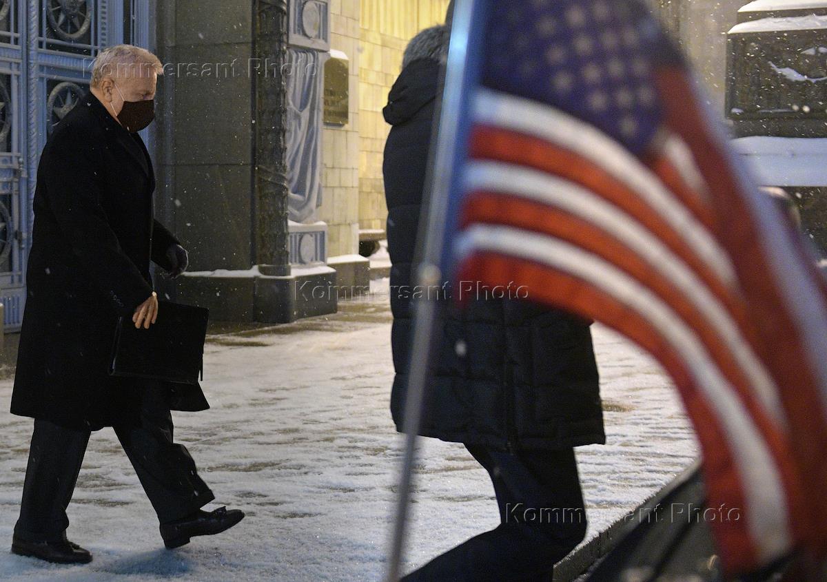 Посол США в России Джон Салливан (в центре) прибыл в МИД России. Посол США привез в МИД России ответ на российские требования о гарантиях безопасности.