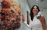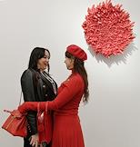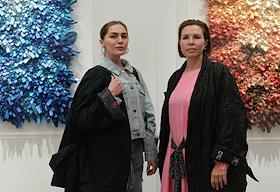 The opening ceremony of the exhibition of South Korean artist Kwan Yong Chan at the Moscow Museum of Modern Art. Fashion designer Elena Lenskaya (left) during the ceremony.