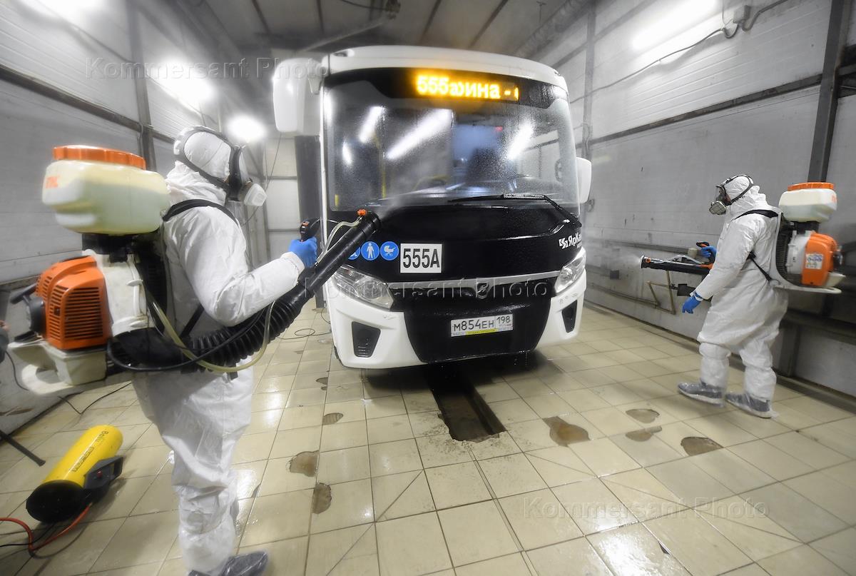 Меры по ограничению распространения коронавирусной инфекции COVID-19. Дезинфекционная обработка маршрутных автобусов автобусного парка ООО "Барс-2" в городе Сертолово.