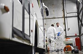Дезинфекционная обработка маршрутных автобусов автобусного парка ООО «Барс-2» в городе Сертолово Ленинградской области.