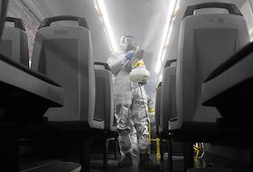 Меры по ограничению распространения коронавирусной инфекции COVID-19. Дезинфекционная обработка маршрутных автобусов автобусного парка ООО "Барс-2" в городе Сертолово.